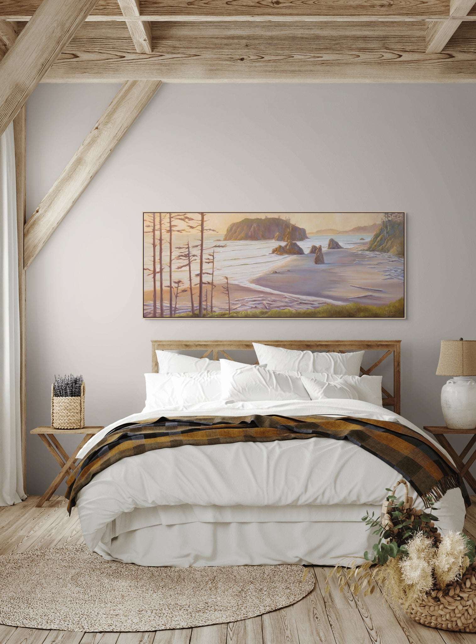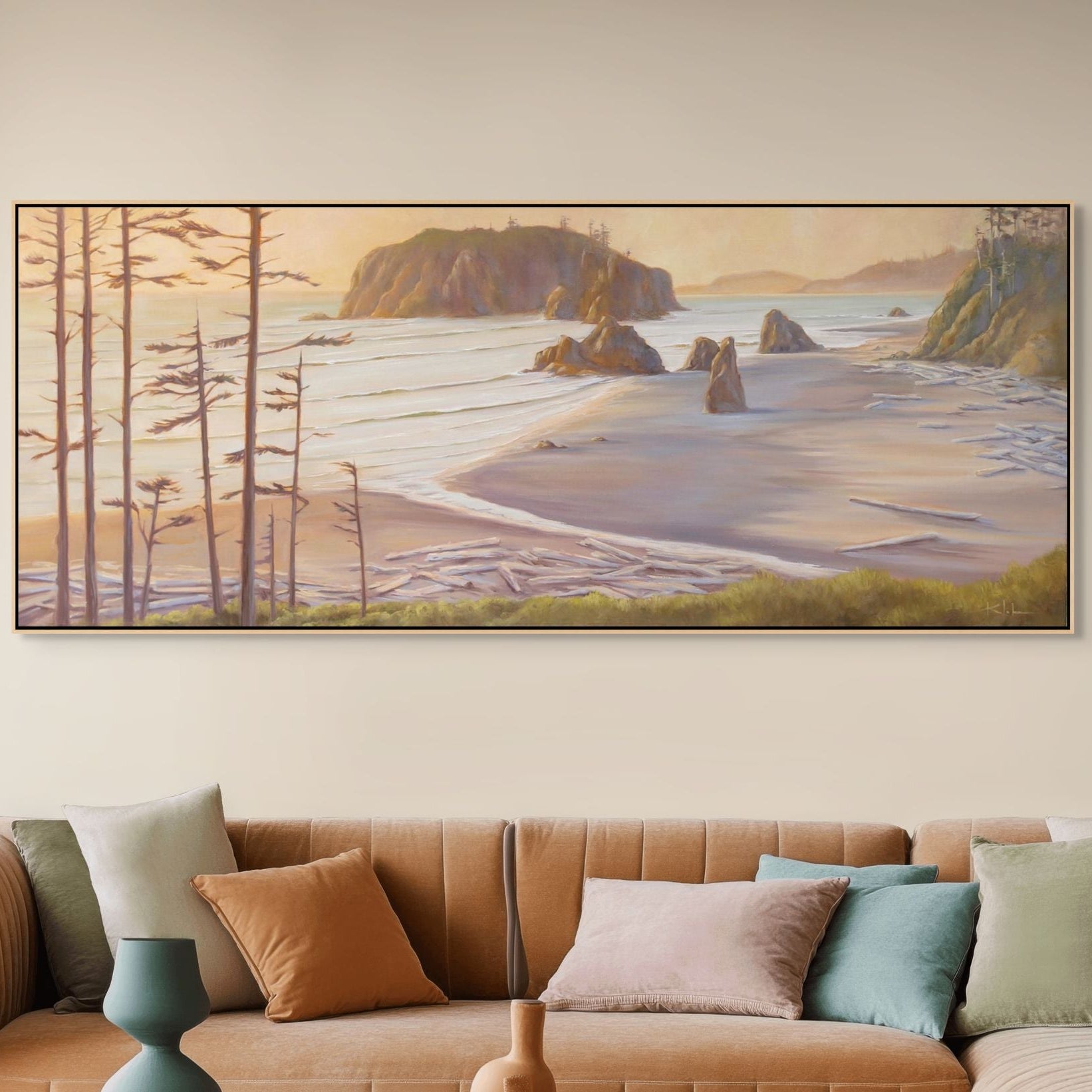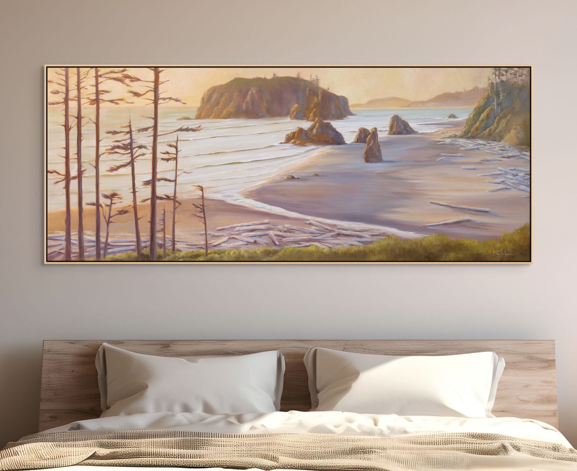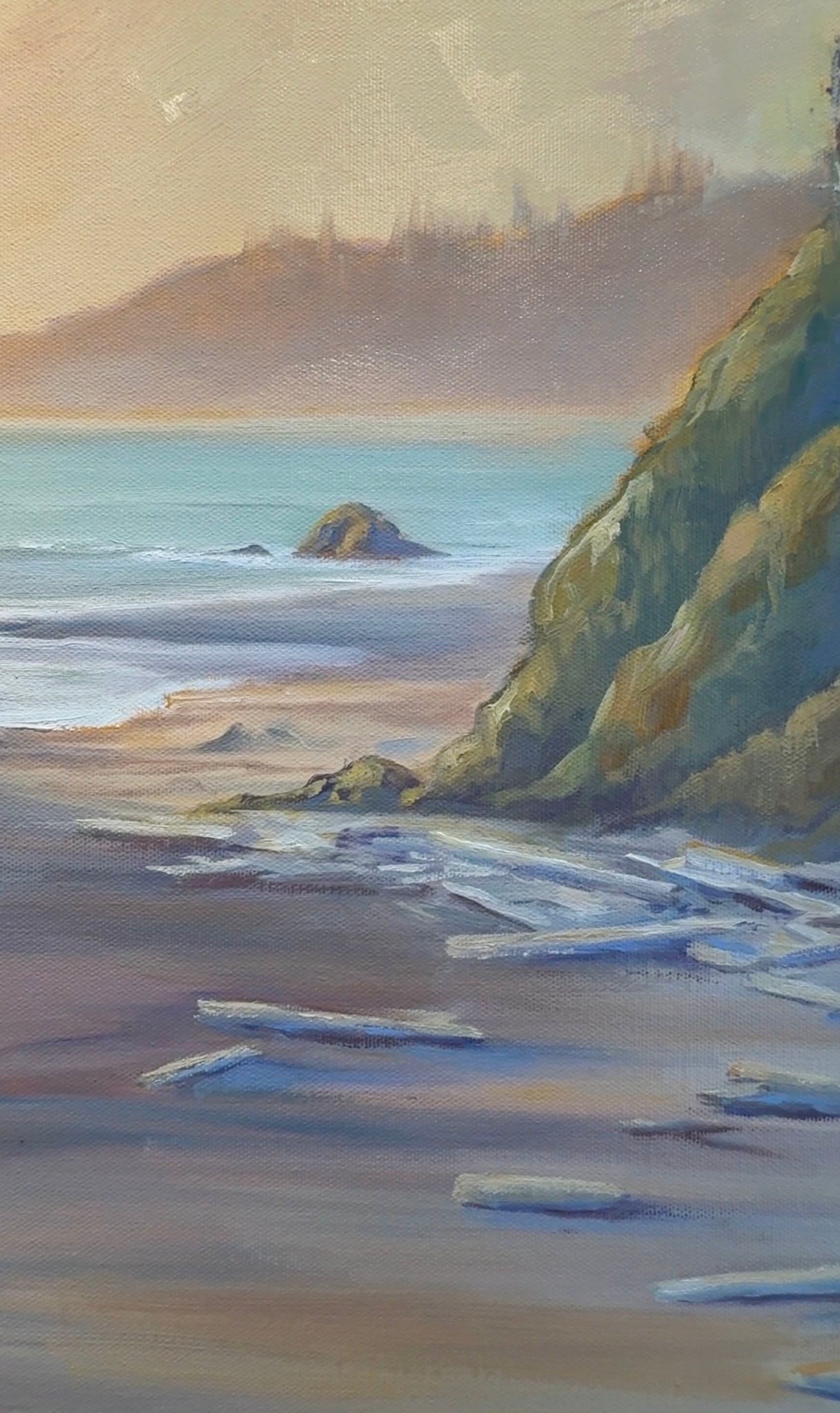 Ruby Beach is one of the most beautiful places on the Washington coast, and I have dreamed of painting it for years. Finally creating this piece feels very rewarding. I chose to create it at golden hour, when the colors of the sea, sand and sky soften and harmonize.